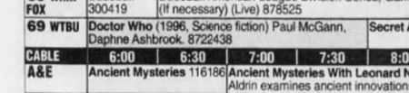 • Doctor Who had been running on WFYI for many years, but the series came to an end with Tom Baker's final story on 1 September 1996. WTBU picked up where they left off, commencing with the Peter Davison stories from 6 October 1996. (Note: some newspapers had the TV Movie listed there in error! (This was possibly because WFYI had been billing the omnibuses as "Doctor Who Movie".)